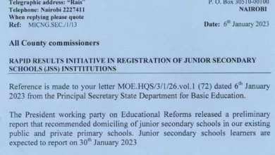 All County commissioners. RAPID RESULTS INITIATIVE IN REGISTRATION OF JUNIOR SECONDARY SCHOOLS (JSS) INSTITUTIONS Reference is made to your letter MOE.HQS/3/1/26.vol.l…